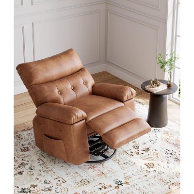 Manual Recliner Chair, PU Leather Rocker Recliner Chair for Adults, 360 Degree Swivel Lounge Chair with Side Pocket