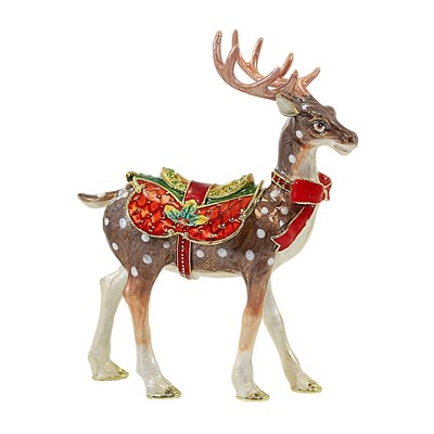 Kubla Craft 5.25 In Reindeer Hinged Box Christmas , Hinged Saddle Bow Holly (1PC)
