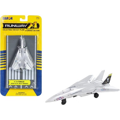 Grumman F-14 Tomcat Fighter Aircraft Silver Met "US Navy VF-84 Jolly Rogers" w/Runway Section Diecast Model Airplane by Runway24