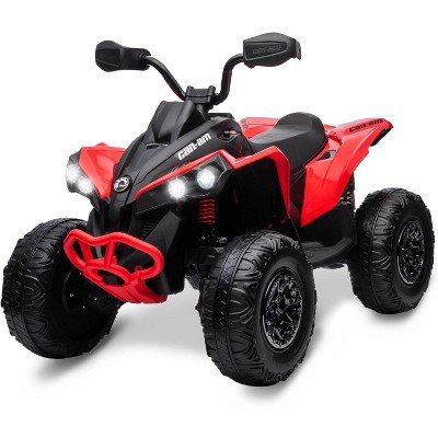 12V Ride on Toy 4 Wheeler Quad Electric Vehicle, with LED Lights, Spring Suspension, Music, USB, Treaded Tires, Red