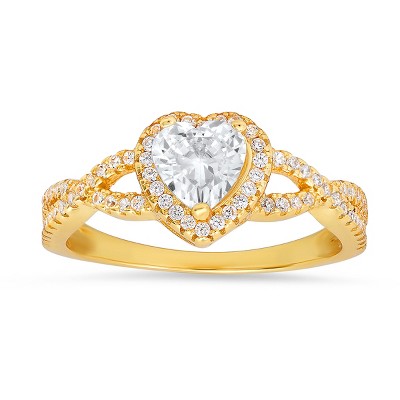 Sterling Silver Heart-cut CZ Halo Ring