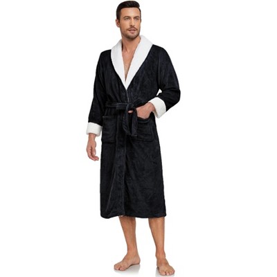 Sol Living Men’s Hooded Fleece Bathrobe, Duster-Style Lounge Robe with Tie Belt & Pockets