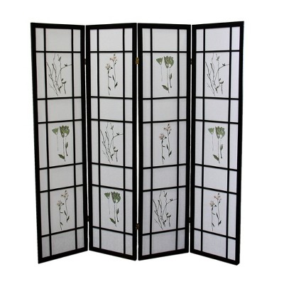 Wooakway Black 70"H 4 Panel Shoji Screen Room Divider