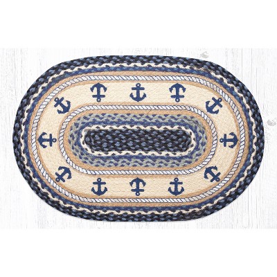 Earth Rugs Oval Patch Tread – Nautical Anchor Design in Braided Jute, 20"x30" Coastal Entryway Accent Rug
