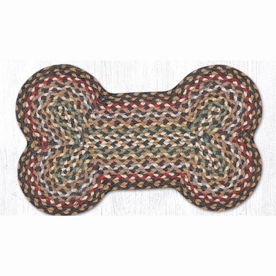 Earth Rugs Medium Dog Bone Mat 13"x22", Olive, Burgundy & Gray Braided Jute, Rustic Pet Rug for Feeding & Lounging Areas