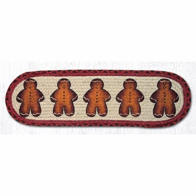 Earth Rugs Oval Stair Tread – Gingerbread Men Holiday Design, Braided Jute Christmas Accent, 27"x8.25" Festive Stair Rug