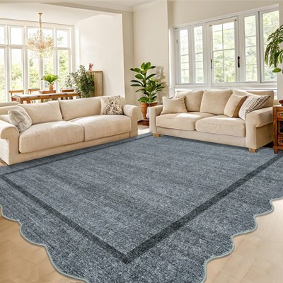 Scalloped Rugs for Living Room Non-Slip Modern Bordered Bedroom Carpet