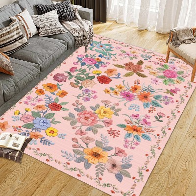 Area Rugs for Living Room Floral Vintage Soft Non Slip Machine Washable Distressed Vintage Rug for Bedroom Dining Room