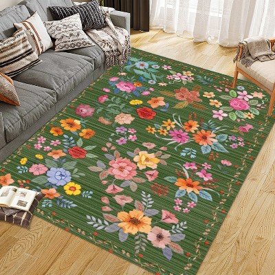 Area Rug Machine Washable Vintage Floral Area Rug Low Pile Non Slip Indoor Rugs for Living Room and Bedroom