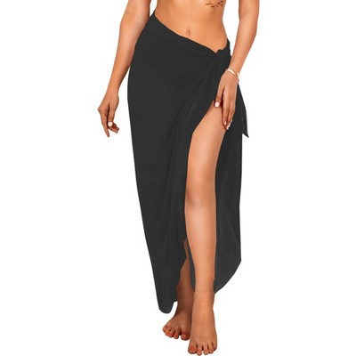 LA LEELA Women's Beachwear Sarong Coverups Bikini Skirt Cover Up Summer Wraps Swimwear Beach Wrap Skirts for Women One Size Black Solid