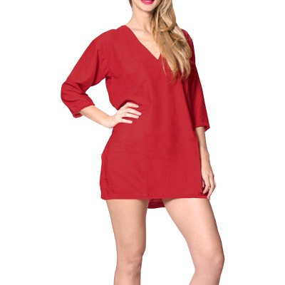 LA LEELA Women's Summer Loose Swimwear Bathing Suit Beach Swimsuit Cover-up Mini Beach Wear for Women