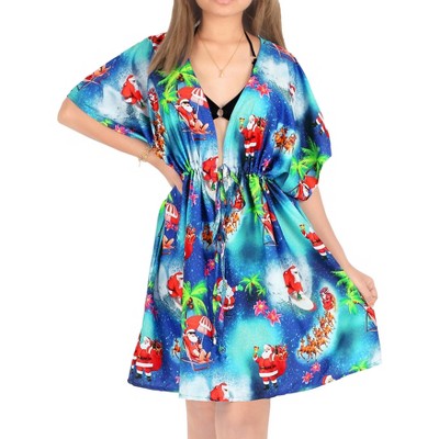 LA LEELA Women's Beachwear Swim Beach Dress Cover Ups for Christmas Bathing Suit Cover up Swimsuit Coverups for Women XL-XXL Xmas Santa Gifts Wave