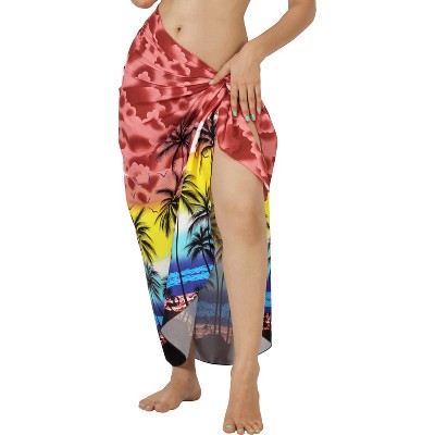 LA LEELA Women's Sarong Bikini Skirt Swimwear Cover up Bathing suit Summer Wraps Swimsuit Beach Wrap Coverups for Women One Size Red Tree