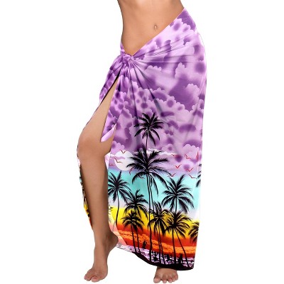 LA LEELA Swim Cover Up Long Women's Beachwear Summer Pool Beach Wraps Skirt Swimwear Sarong Sheer Coverups Scarf for Women One Size Purple Tree