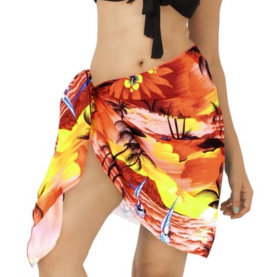 LA LEELA Women's Beachwear Sarong Coverups Bikini Skirt Cover Up Summer Wraps Swimwear Beach Wrap Skirts for Women One Size Orange Abstract