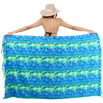 LA LEELA Women's Beachwear Sarong Coverups Bikini Skirt Cover Up Summer Wraps Swimwear Beach Wrap Skirts for Women One Size Blue Tree
