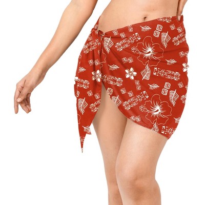 LA LEELA Women's Bikini Skirt Sarong Swimwear Cover up Summer Wraps Swimsuit Beach Wrap Coverups for Women One Size Red Floral