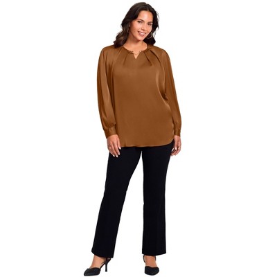 Roaman's Tasseled Long-Sleeve Blouson Top