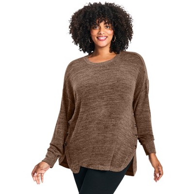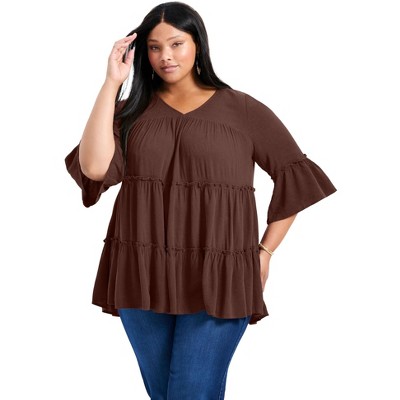 Roaman's Plus Size Tara Pleated Shirt – Adjustable 3/4 Sleeve Swing Tunic With Notch Collar