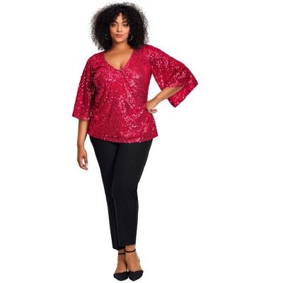 Avenue Faux Wrap Sequin Top