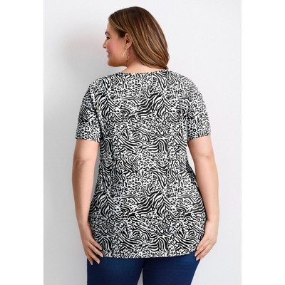 Roaman's Plus Size Floral Y-Neck Pintuck Tunic – Adjustable Long Sleeve Button-Front, Relaxed Shirt Style