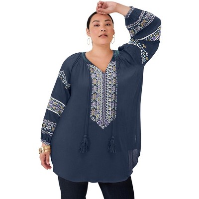 June + Vie by Roaman's Embroidered Peasant Blouse