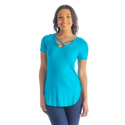 Womens V Neck Criss Cross Neckline T Shirt Tunic Top - 24seven Comfort Apparel™