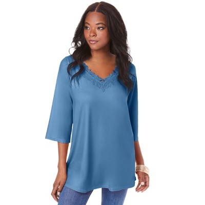 Roaman's Lace-Sleeve Ombre Slub Tee