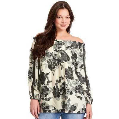 June + Vie by Roaman's Off-The-Shoulder Smocked Cropped Top