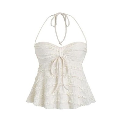 LEVEN SIXTEEN Women'S Peplum Halter Summer Top