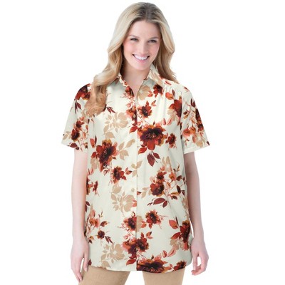 Woman Within No Iron Short Sleeve Peachskin Shirt