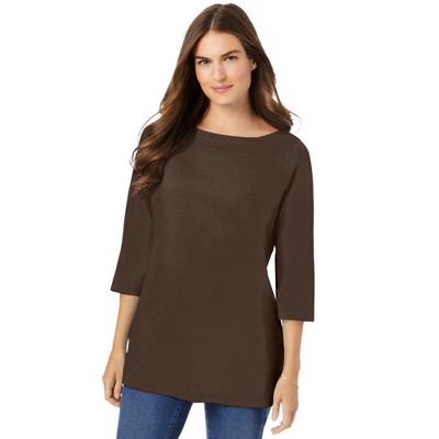 Woman Within Perfect Three-Quarter Sleeve Boatneck Tee