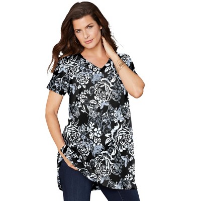 Woman Within Perfect Printed Short-Sleeve V-Neck Tee