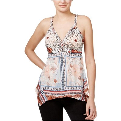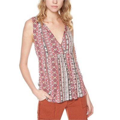 Free People Womens Printed Tie Front Sleeveless Blouse Top