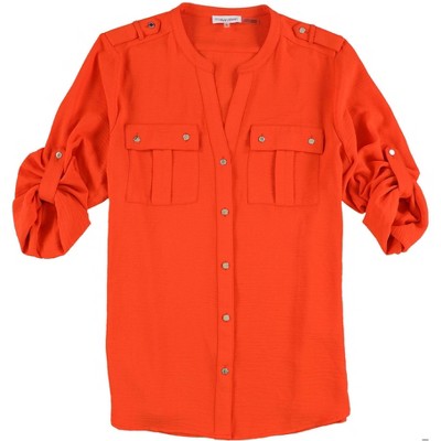 Vince Camuto Womens Smocked Cuff Knit Blouse