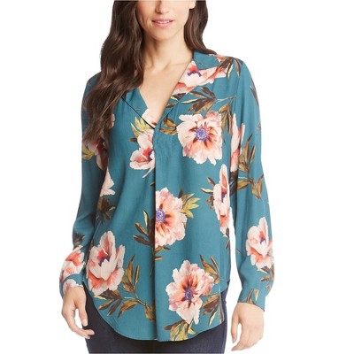 Karen Kane Womens Printed Notch Collar Floral Pullover Blouse