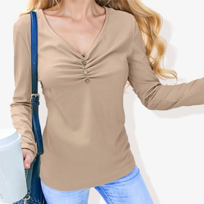 Anna-Kaci Women's Solid Color V-Neck T-Shirt Tops for Everyday Style