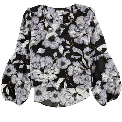 bar III Womens Blouson-Sleeve Floral Knit Blouse