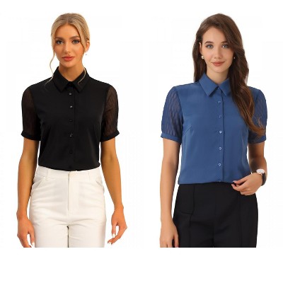Allegra K Women's Chiffon Semi Sheer Keyhole Neck Elegant Work Blouse 2 Packs