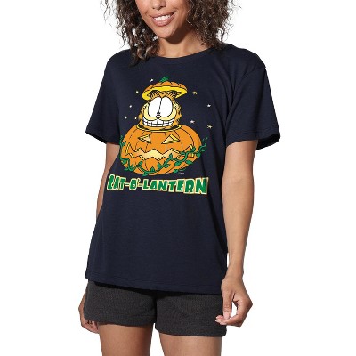 Women's Garfield Cat O Lantern Loose T-Shirt Navy