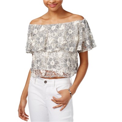 Alfani Womens Crochet-Sleeve Pullover Blouse