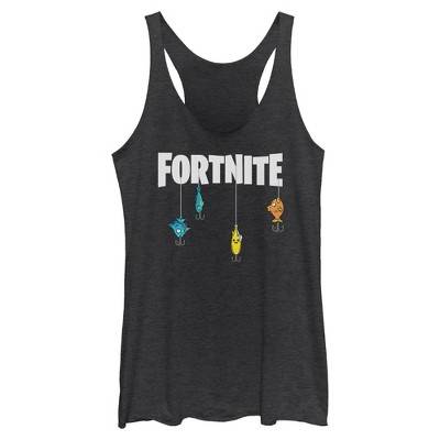 Womens Fortnite Fishing Lure White Logo Racerback Tank