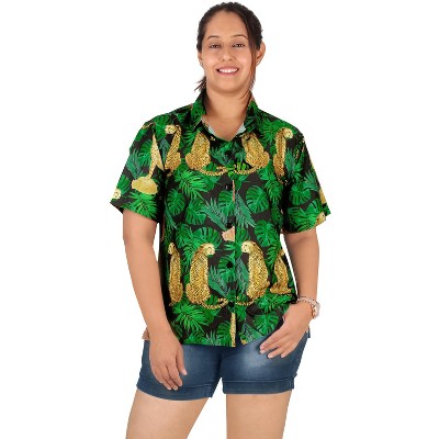 LA LEELA Hawaiian Shirts Womens Casual Summer Beach Leopard Print Blouses Shirt Short Sleeve Vacation Tops Button Up Shirts