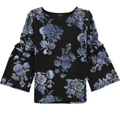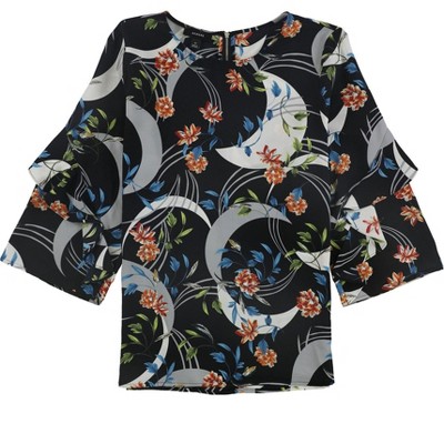 Alfani Womens Floral Ruffle Sleeve Pullover Blouse