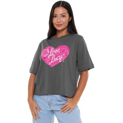Women's I Love Lucy Floral Logo Boxy Cropped T-Shirt