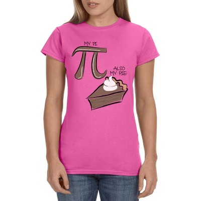 My Pi But Also My Pie Women's Shirt Funny Math Teacher's Mathematics Pi Day Ring-Spun Fabric T-Shirt Tee Blue