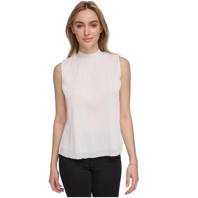 Calvin Klein Womens Plisse Mock Neck Halter Top Shirt