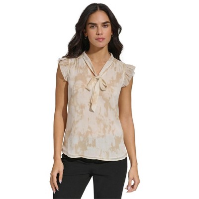 Calvin Klein Womens Tie-Neck Peasant Blouse