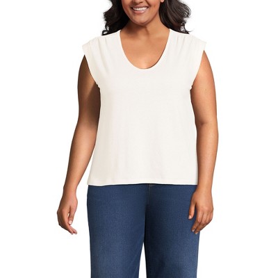 Lands' End Women's Linen Blend Cap Sleeve Gathered Shoulder Tee