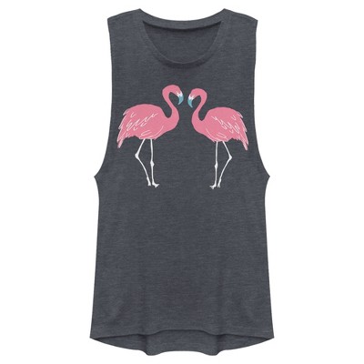 Juniors Womens Lost Gods Couple Pink Flamingos Festival Muscle Tee